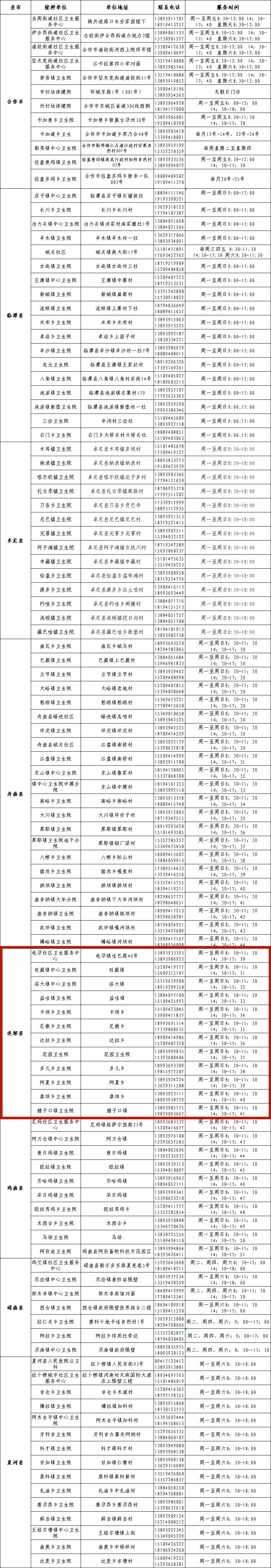甘南州七县一市国家免疫规划HPV疫苗接种单位信息公示