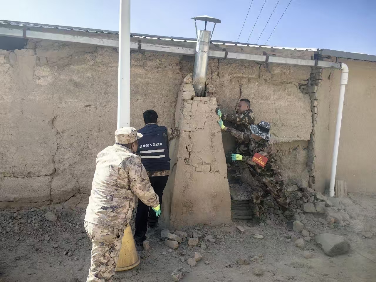 科学排险,全力防范次生灾害。针对排查发现的危墙、危房、悬挂物松动等即时风险点,党员突击队发扬不怕疲劳、连续作战的作风,在专业人员指导下迅速开展排险作业。截至目前,共排查出C级危房98户、D级危房10户,其他房屋主要存在外墙倾斜、墙体开裂、院落围墙裂缝等问题,房屋主体结构未受破坏。同时,严格按照“安全第一、科学处置”原则,对多处危墙、危房实施安全拆除,设置警戒隔离,并加强对地质灾害隐患点的监测预警,落实专人24小时值守,坚决防止次生灾害发生。